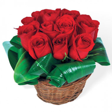 Découvrez le bouquet Brazilia, une élégante composition florale de roses rouges piquées en vannerie.