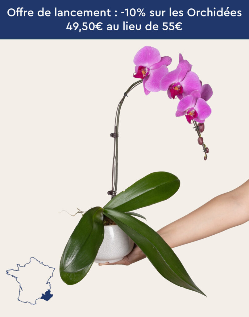 Cette Orchidée d’exception est cultivée dans le Var par un producteur passionné. Le climat méditerranéen favorise une floraison généreuse et durable. Les pétales fins, les longues hampes florales et le feuillage luxuriant offrent une composition florale raffinée et facile à entretenir. La floraison dure de 2 à 3 mois et l’Orchidée est labellisée Fleurs de France, garantissant sa qualité et son origine.