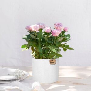 Nos rosiers sont soigneusement sélectionnés et cultivés pour garantir une qualité optimale et une longue durée de vie. Avec son cache pot, votre rosier sera prêt à être offert et pourra être facilement disposé dans n’importe quel endroit de la maison.